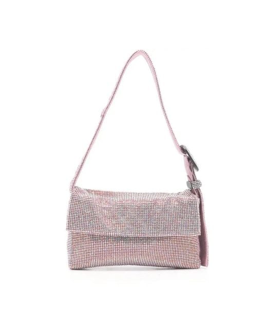 Benedetta Bruzziches Chapeloise Vitty La Mignon Shoulder Bag pairs crystal embellishment with a compact foldover silhouette for refined evening wear. The silk-lined main compartment and adjustable shoulder strap keep essentials organised and comfortable to carry. Key attributes: Pink | Rosa | Adjustable shoulder strap | Main compartment | Internal logo patch | Concealed top-zip fastening | Crystal embellishment | Foldover top | Silk lining | Dimensions & fit: Depth: 4 cm | Height: 11 cm | Width: 19 cm | Strap: 46 cm | Composition & care: Silk (lining) | Crystal embellishment
