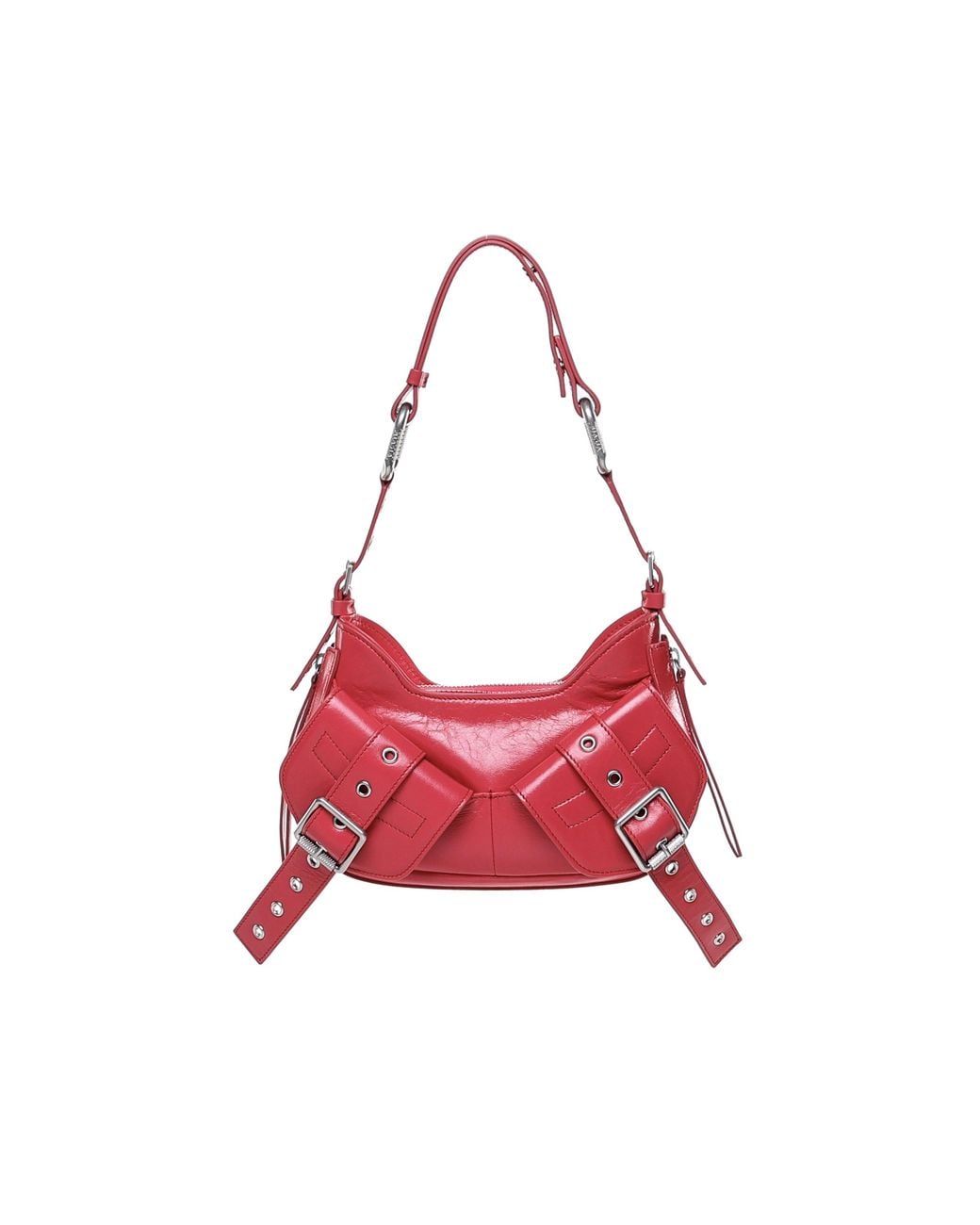 -Shoulder bag with adjustable shoulder strap -Dynamic and genderless silhouette -Zip closure -Strap detail on the front -Measurement 15.5x25x12cm -Made in Italy -Colour Red. . Composition COWskin
