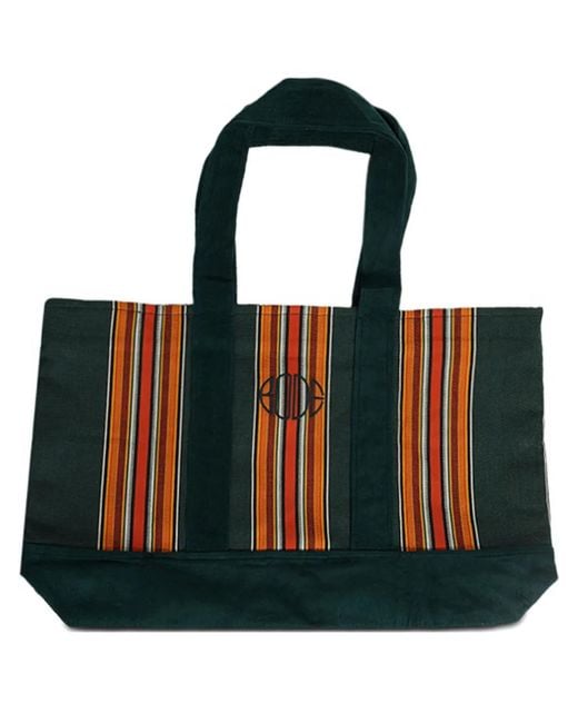 Parakeet Logo-Embroidered Striped Canvas And Corduroy Tote Bag - Green