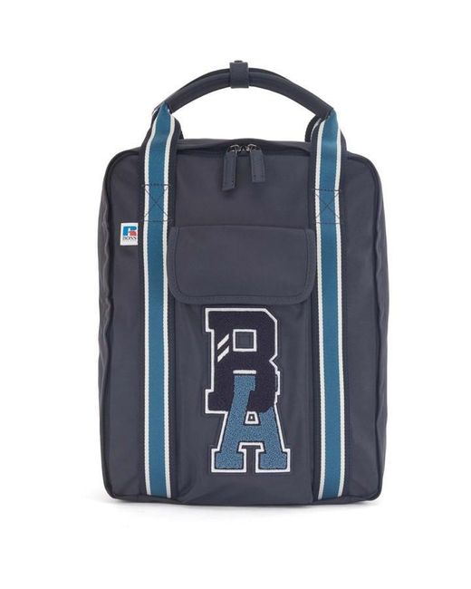 BOSS x Russell Athletic Squared Backpack - Structured nylon with firm hand feel. - Main zip compartment. - Front open pocket with snap button. - Internal open pockets. - Big handles. - Adjustable shoulder straps. - Approx. dimensions: 30 x 39 x 10cm - Ref: 50465341-410 Colour: blue