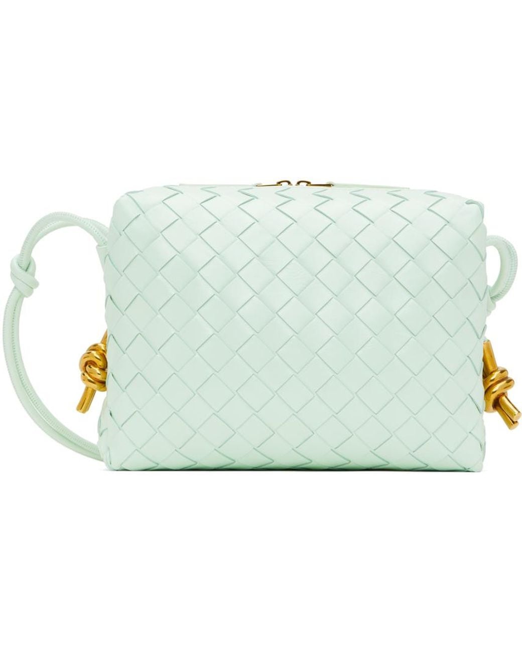 Intrecciato-woven calfskin shoulder bag in green. Knotted detailing and sculptural gold-tone hardware at adjustable shoulder strap. · Two-way zip closure · Calfskin lining · H6.5 x W8.5 x D3.5 in Supplier color: Glacier muse