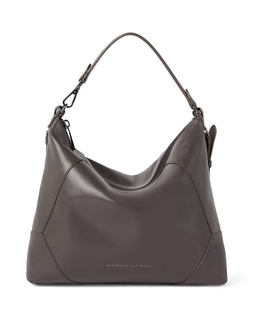 A Brunello Cucinelli signature, the bc Duo bag is reimagined season after season. This time, it's inspired by retro influences, shaped from soft leather to a shoulder style, complete with a functional zip fastening and an adjustable strap. Of course, it also features the brand’s monili trim which adds a touch of sparkle to an otherwise minimal design. Colour: grey