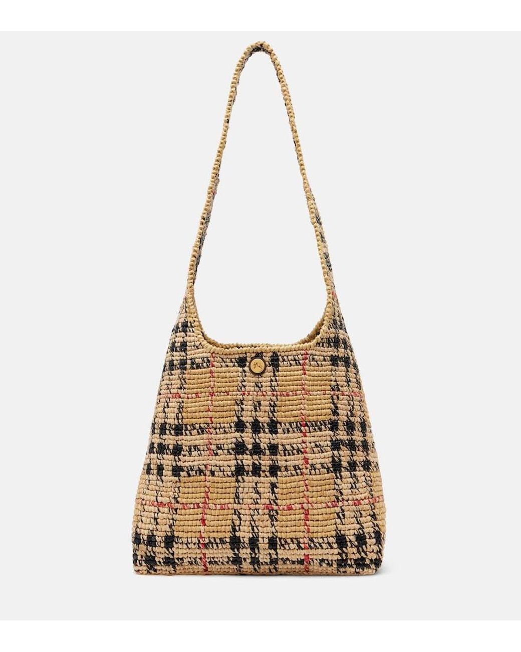 Material: raffia. Lining: raffia. Made in Madagascar . Designer colour name: Sand Ip Check. Trim: leather. Closure: magnetic fastening. Top handle. Includes: dust bag. Raffia. Colour: metallic