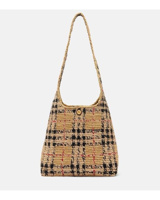 Ladies Medium London Check-Pattern Tote Bag - Metallic