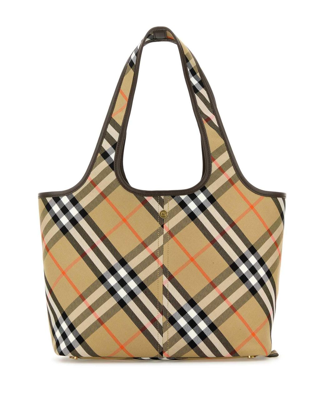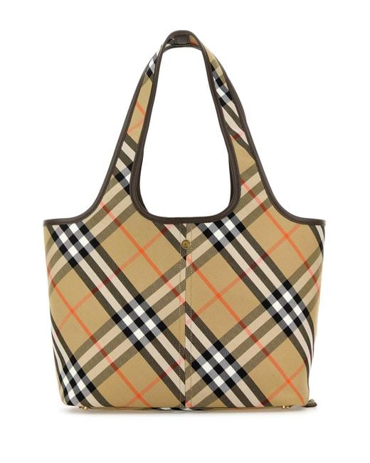 Embroidered canvas small Check shopping bagSpecificationValueBrandBURBERRYColorCheckedMaterialExterior: 100% Cotton Finishing: Golden metalMade InITGenderWomenSeasonContinuativoCollectionBAGSProduct TypeHANDBAGS