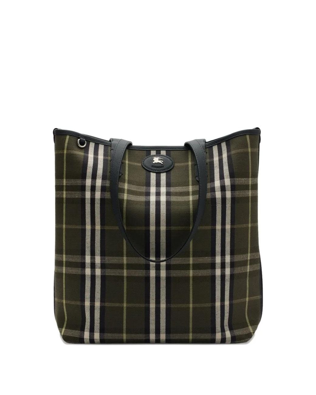 Thicket green and black check pattern grainy texture top handles detachable pouch Equestrian Knight design Size: One Size. Gender: Male. Material:Calf Leather/Cotton/Viscose/Linen/Flax. Colour: black