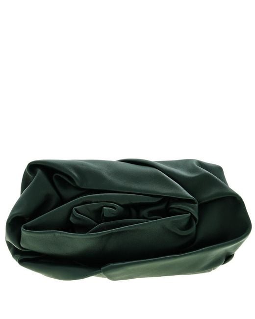 Women's Green Rose Motif Leather Clutch