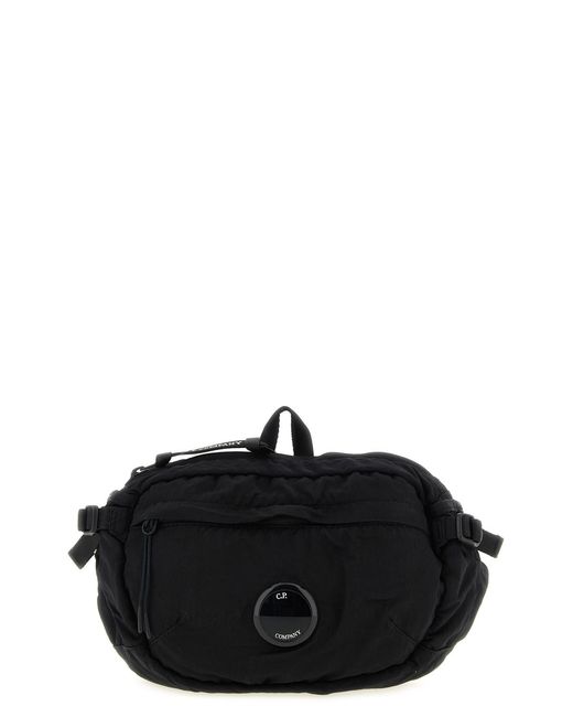 Garment-dyed Nylon B crossbody bag with anti-drip treatment, zip closure and top handle, front zip pocket and iconic 'Lente' by C.P. Company, adjustable shoulder strap with tuc closure. Composition: 100% polyamide. Size&Fit: W 26 x H 19 x D 7.5 cm. Colour: black