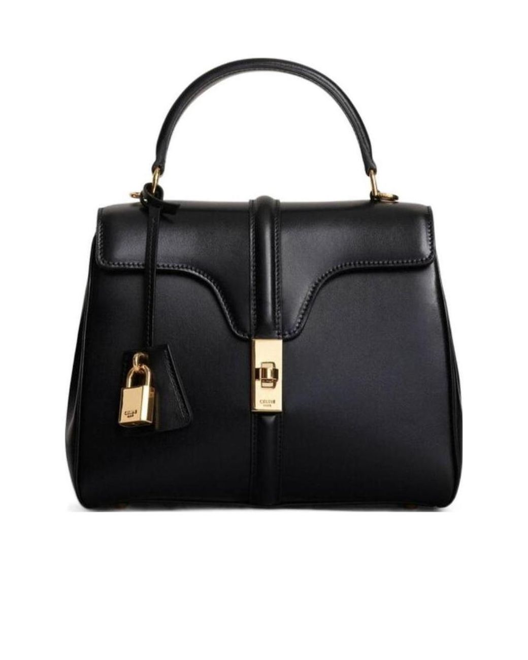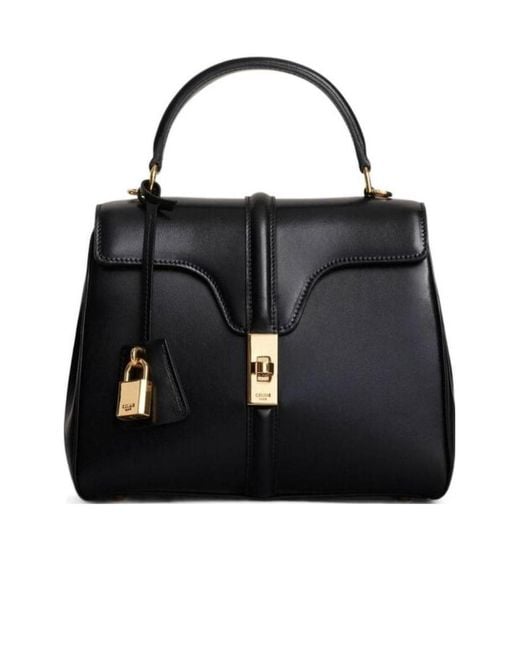 * Description Named after 16 rue Vivienne, CELINEs address located at the hotel particulier Colbert de Torcy in Paris. The bag is a prelude to the CELINE look capturing a resolutely chic French spirit. It affirms the House's style and the pursuit of exceptional craftsmanship. Each 16 is individually numbered on the back of the pocket. Selected amongst the most luxurious skins, the leather has been meticulously chosen for its balance between great shine and perfect transparency, whose unique finish is exclusive to Celine leather goods. * DETAILS 9.1 x 7.1 x 3.9 IN (23 x 18 x 10 CM) Calfskin Lambskin Lining GOLD FINISHING Hand carry, shoulder carry and cross-body carry Two main compartments One Inner flat pocket One inner zipped pocket One outer flat pocket on the front under the flap REMOVABLE STRAP Handle with 3.35 IN (8.5 CM) drop KEY HOLDER BOTTOM studs Reference : 188003BEY.38NO Colour: black
