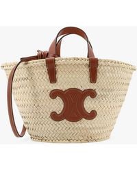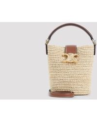 Go to JomashopCeline Ladies Tote. SKU: 199162FU3.02NT. Color: Natural/Tan. Size: 10 x 7 x 5. Celine Triomphe Raffia-Effect Textile Handbag. This bag features a gold finish and offers hand carry, shoulder carry, and cross-body carry