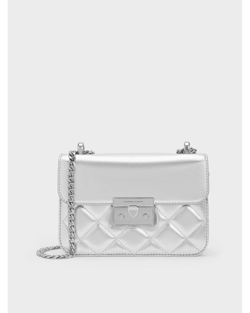 Women's White Alva Metallic Quilted Chain-Handle Bag