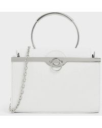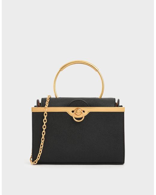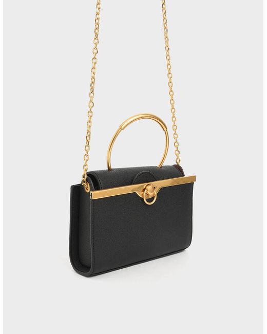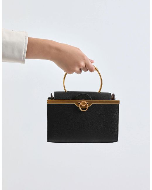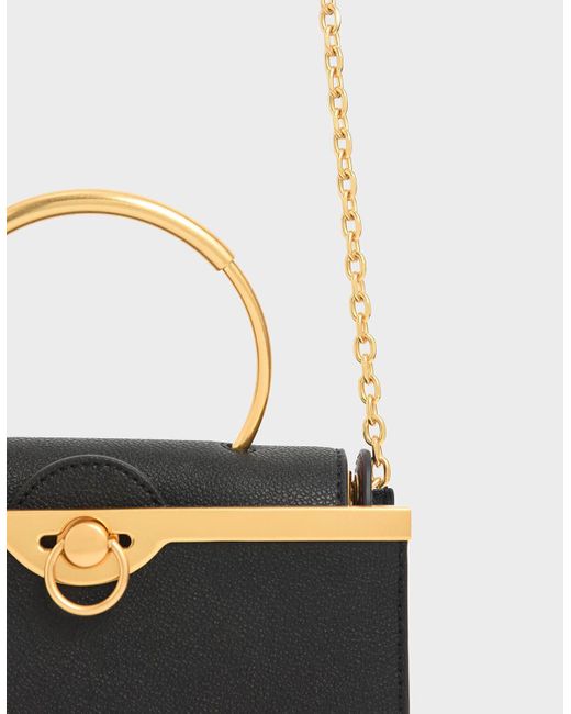 Elegance in the palm of your hand. This black clutch topped with a stunning bracelet handle takes a simple maxi dress firmly into after-dark territory. Colour: black
