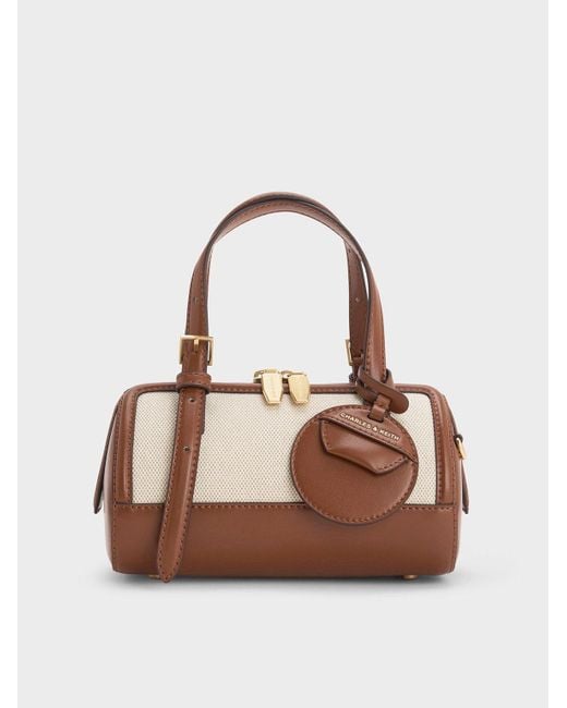 Women's Brown Enola Canvas Two-Tone Bowling Bag