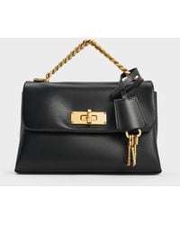 Charles & Keith Women's Black Glittered Push-lock Chain-handle Bag