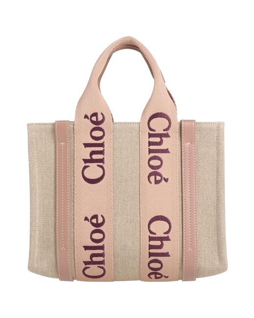 CHLOÉ. tote, canvas, grosgrain, plain colour with appliqués, brand logo, fully lined, double handle, medium size, contains non-textile parts of animal origin, planning a weekend getaway or beach holiday? this is the effortless summer style you need. 100% Linen, Leather, Polyester. Colour: pink