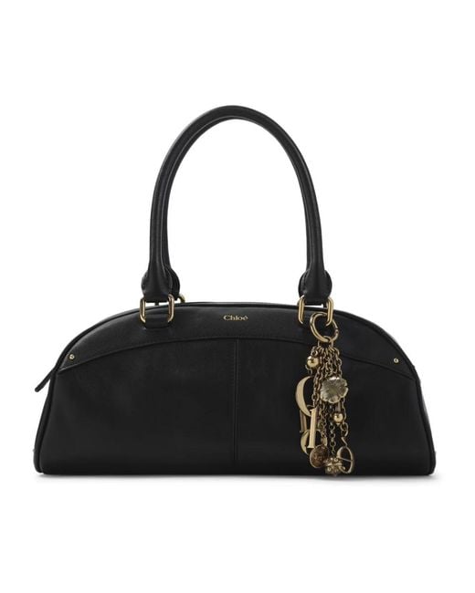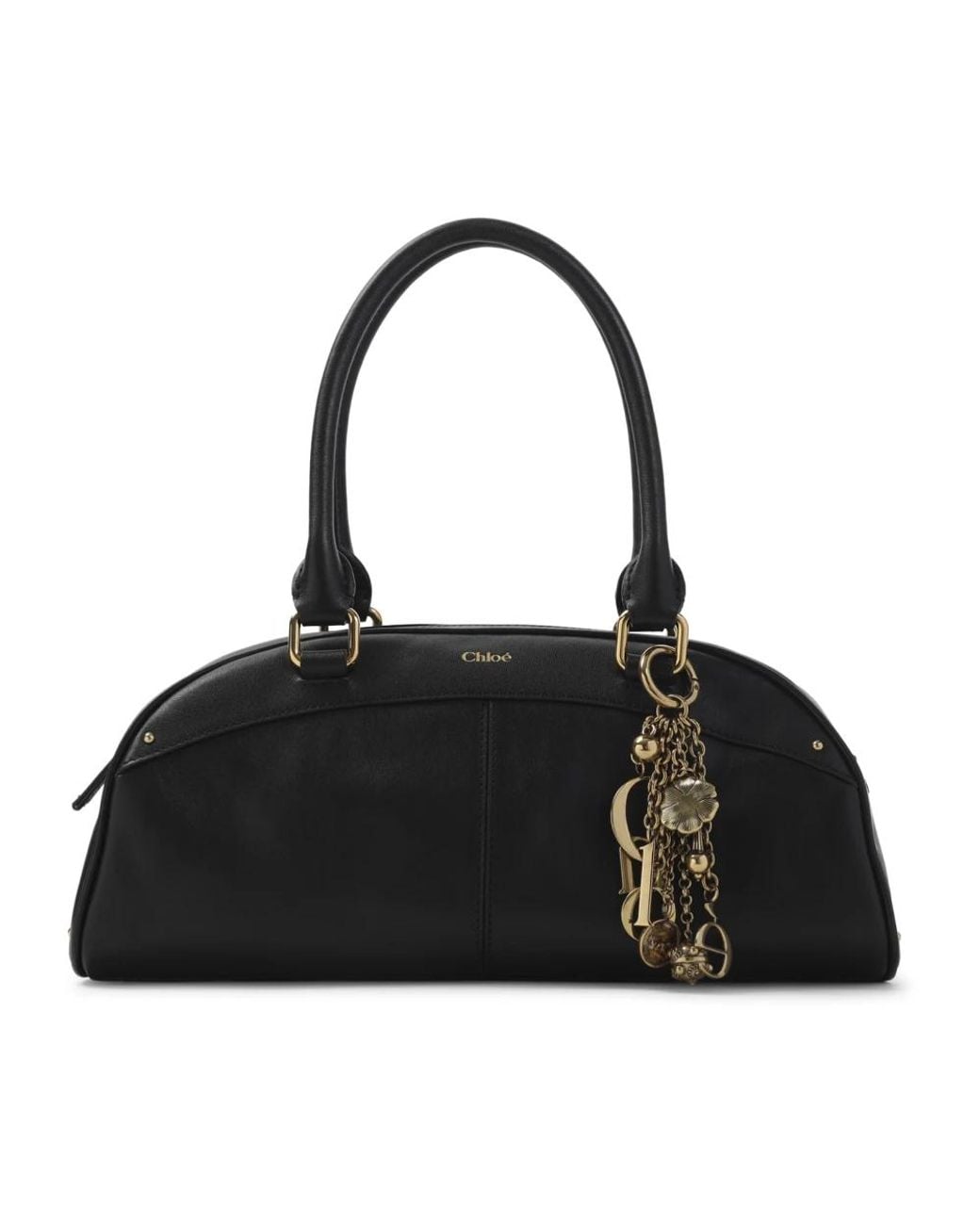 Chloé's Bowling Handbag pairs a sculpted, semi-circular silhouette with practical detailing for everyday wear. Crafted in calf leather, it provides a refined finishing touch to both casual and dress looks. Key attributes: Black | Calf leather | Top handles | Top zip fastening | Semi-circular silhouette | Gold-tone hardware | Decorative charm | Dimensions & fit: W:33cm H:15cm D:15cm | Composition & care: 100% calf leather