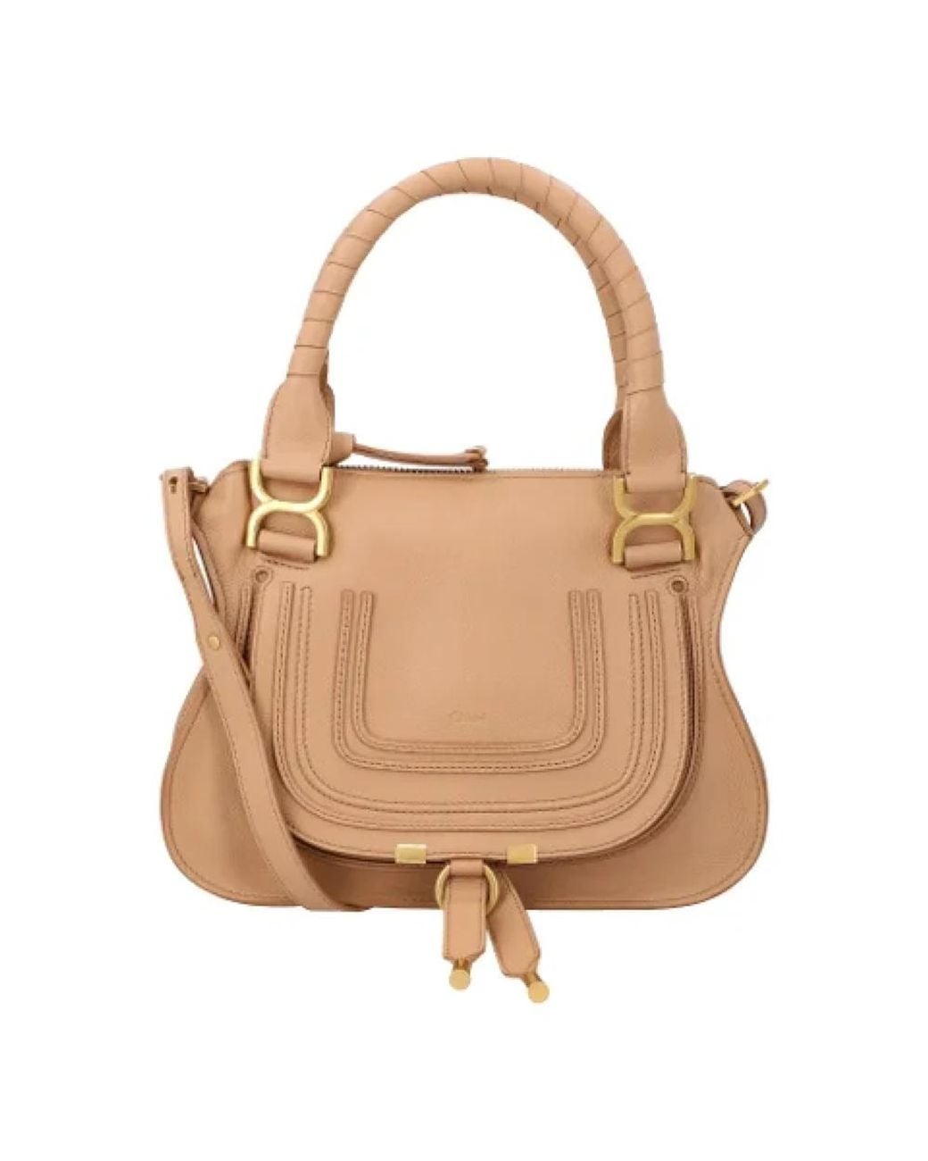 Discover the Chloé Small Double Carry Bag, a versatile accessory crafted from grained calfskin, perfect for both long shoulder and cross-body wear. Key attributes: Brown | Calfskin | Long shoulder carry | Cross-body carry | Removable leather strap | Roomy compartment | Zippered closure | Front slip pocket hidden by flap | Dimensions & fit: Width: 11.8 inches | Composition & care: Calfskin | Linen | Wipe with a soft cloth, store in dust bag when not in use. Colour: natural
