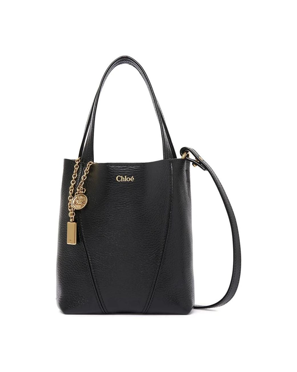 Elevate your style with this Chloé Spin leather shoulder bag featuring the iconic Chloé Logo detail. Crafted in Italy from luxurious leather, this tote bag is both chic and practical. The bag comes with a magnetic button closure, double leather handles, and an adjustable and removable shoulder strap. It also features a metal chain with Chloé and Horse medals. Dimensions: Width 7.87", Height 7.48", Depth 3.54". Size Range: Onesize. Colour: black