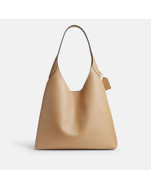 Effortlessly elegant and instantly eye-catching Coach boast a luxurious repertoire, expertly expressed in this Brooklyn Shoulder Bag. Keep your essentials at ease of access with the inside snap pocket. With space enough for a 15 laptop, this bag is perfect for the work commute. Whether heading to the office or enjoying a day trip to the city this shoulder bag adds an edge of exquisite glamour to your look. Product Highlights: * Chic and stylish this bag boasts a classic colourway with subtle gold-tone branding for an opulent appeal * Secured with a magnetic fastening for ease * Composition: Natural grain leather * Dimensions approximately: H:38.74cm x W:43.18cm x D: 12.07cm Colour: natural