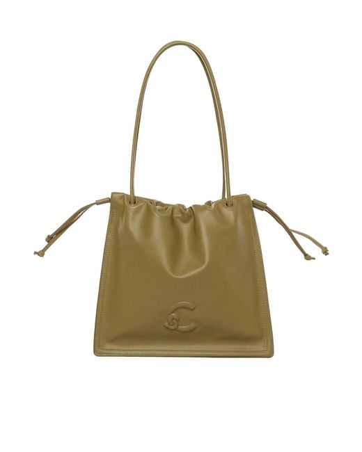 Women's Metallic Logo Embossed Drawstring Tote Bag