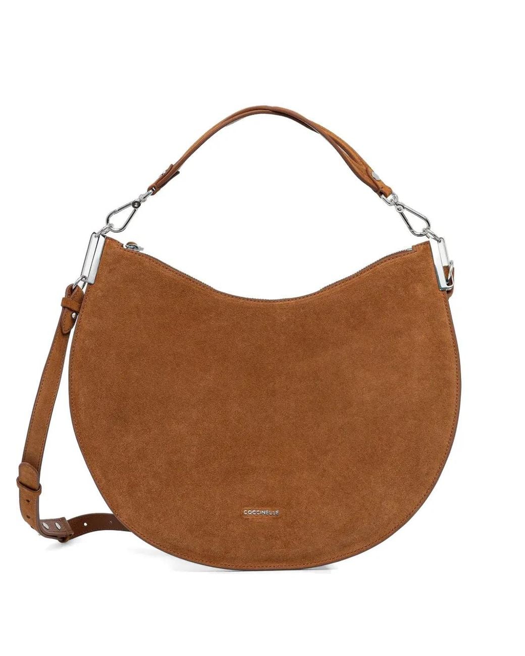 Brown zip fastening detachable top handle detachable shoulder strap silver-tone hardware main compartment half-moon silhouette Size: One Size. Gender: Female. Material:Calf Suede.
