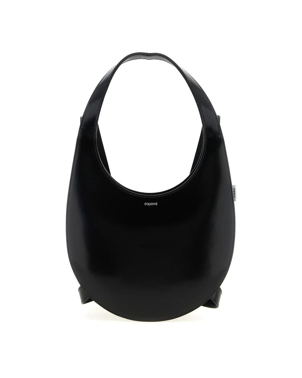 Coperni Swipe Backpack is an oval-shaped leather backpack inspired by the i Phone 'swipe to unlock' icon. It pairs a glossy, sculpted silhouette with practical details like a hidden 360° zip and adjustable straps for everyday carry. Key attributes: Black | Cow leather | 360° hidden zip closure | Fixed top handle | Adjustable shoulder straps with metal logo buckle | Dual shoulder straps | Oval-shaped silhouette | Shape inspired by the i Phone 'swipe to unlock' icon | Front embossed logo | Glossy smooth finish | Dimensions & fit: W 22 x H 16.5 x D 5.5 cm | One size | Composition & care: 100% cow leather (Bos Taurus) Colour: black