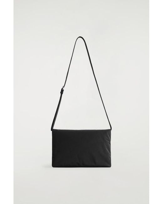 This modern piece marks the evolution of a COS icon: the padded bag. Crafted from durable recycled fabric, it's padded with a soft, pillowy filling and features a foldover design with zipped pockets and a removable strap. Style it as a crossbody or held under the arm like a clutch. Zip and magnetic closure. Recycled polyester is polyester made from PET bottles or end-of-life textile waste. The PET bottles or textile waste is mechanically recycled and processed into new yarn Shell: 100% Recycled polyester. Lining: 50% Cotton, 50% Recycled cotton. Excluding trims Height: 21cm, Width: 31cm, Depth: 10cm COS Women's Trifold Padded Crossbody Bag in Black