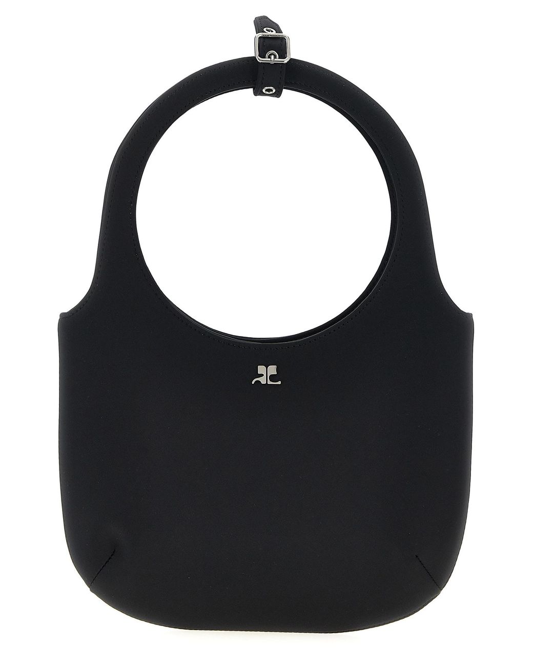 'Holy' satin handbag with front metal logo, double fixed handle with strap detail, magnetic closure, adjustable and removable shoulder strap. Composition: 97% polyester, 3% elastane Colour: black