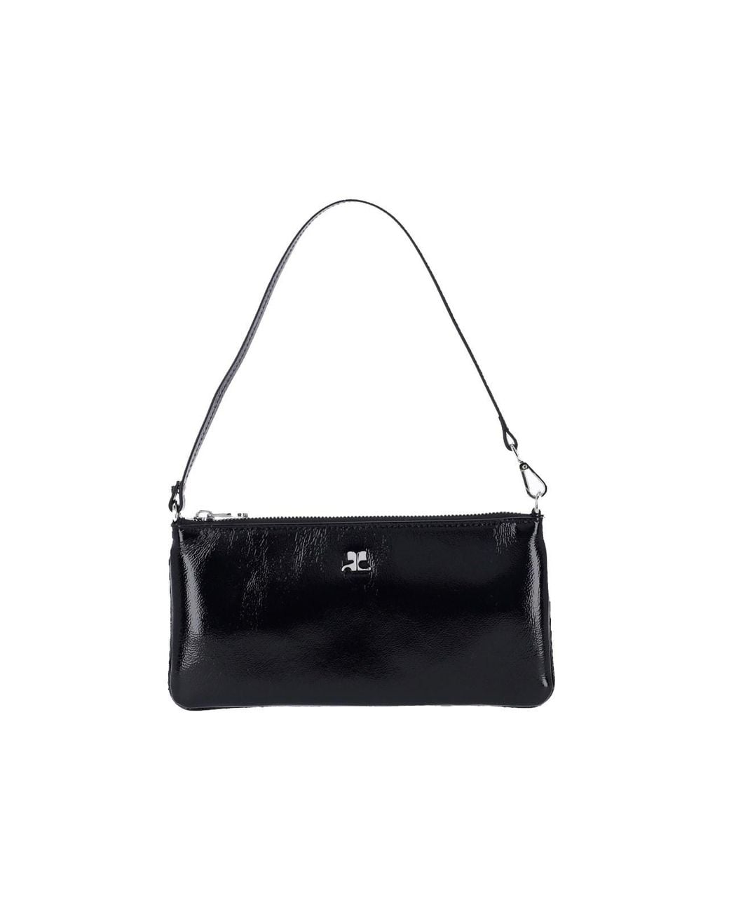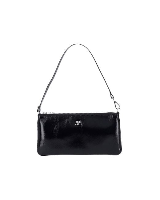 Courrèges logo pouch in black calf leather, adjustable top handle, top zip closure, silver metal logo on the front, single inner compartment. - Handle drop: 45 cm Colour: white