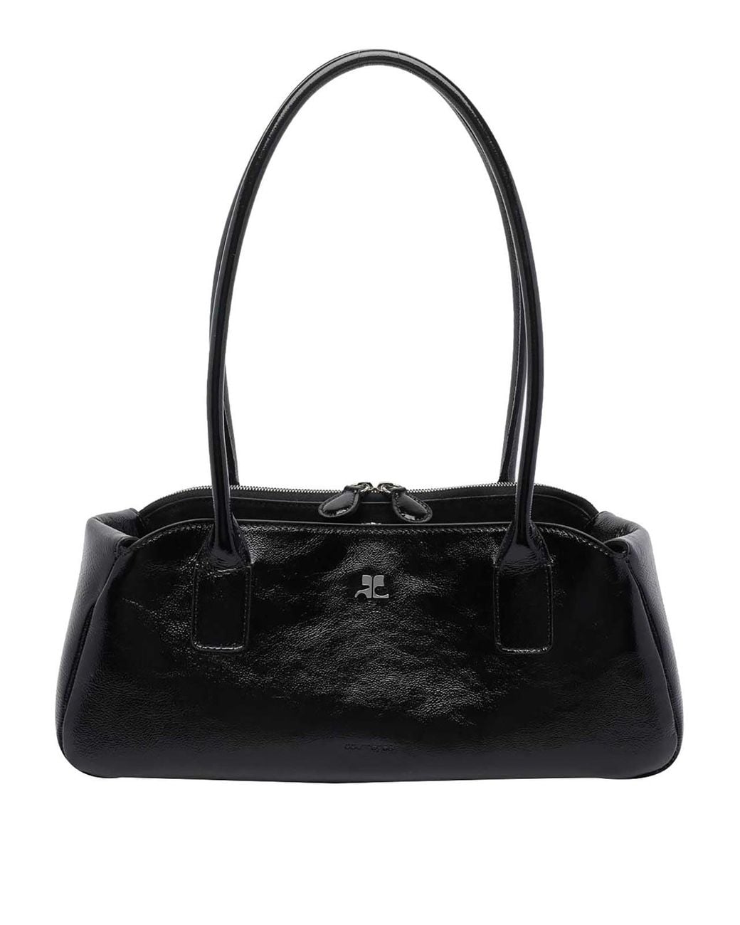 Courreges strip naplack shoulder bag, magnetic and hook closure, inner open pocket, one zipped pocket, double handle Colour: black