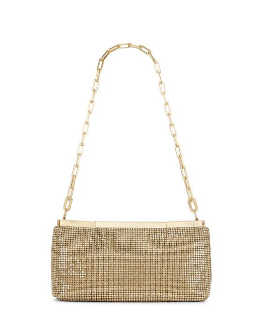 Cult Gaia Felice Clutch in Metallic Gold. Cult Gaia Felice Clutch in Metallic Gold. 100% Glass rhinestone Lining: 100% Polyester. Magnetic top closure. One main compartment. Metal detachable chain included. Measures approx 9.5 W x 5 H x 0.75 D Shoulder strap with a 11 drop. CULG-WY395. CL3668P92980. Founded in 2012 by designer Jasmin Larian, Cult Gaia is a brand that takes art just as serious as fashion: the timeless collection's pieces are crafted as stunning heirloom items made to live in one's wardrobe forever. As an artistic label that designs for the moving eye, Cult Gaia aims to create an effortless visual feast through its intricately designed accessories, such as handbags, hats and jewellery. Colour: white