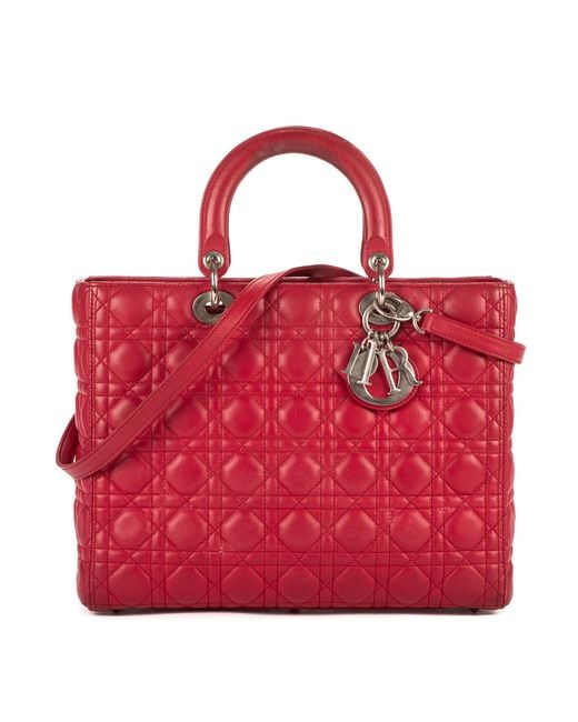 Christian Dior Bags Lady Dior Large Handbag in Red Cannage Leather and Silver hardware. The product is in Very Good Condition (AB). Accessories Included: Strap; Dustbag Exterior Notes: Slightly scuffed on leather Strap/Handle Notes: Slightly dark on handles BrandCo Paris finds rare and top condition items at great deals, they are worth your patience! Shop with confidence - All BrandCo Paris items are carefully selected and authenticated by our team of experts. All the items come with an authenticity certificate and packaging delivered by BrandCo Paris. Item Condition Grading Table N (Like New) AA (Perfect Condition) A (Excellent Condition) AB (Very Good Condition) B (Good/Fair) Colour: red