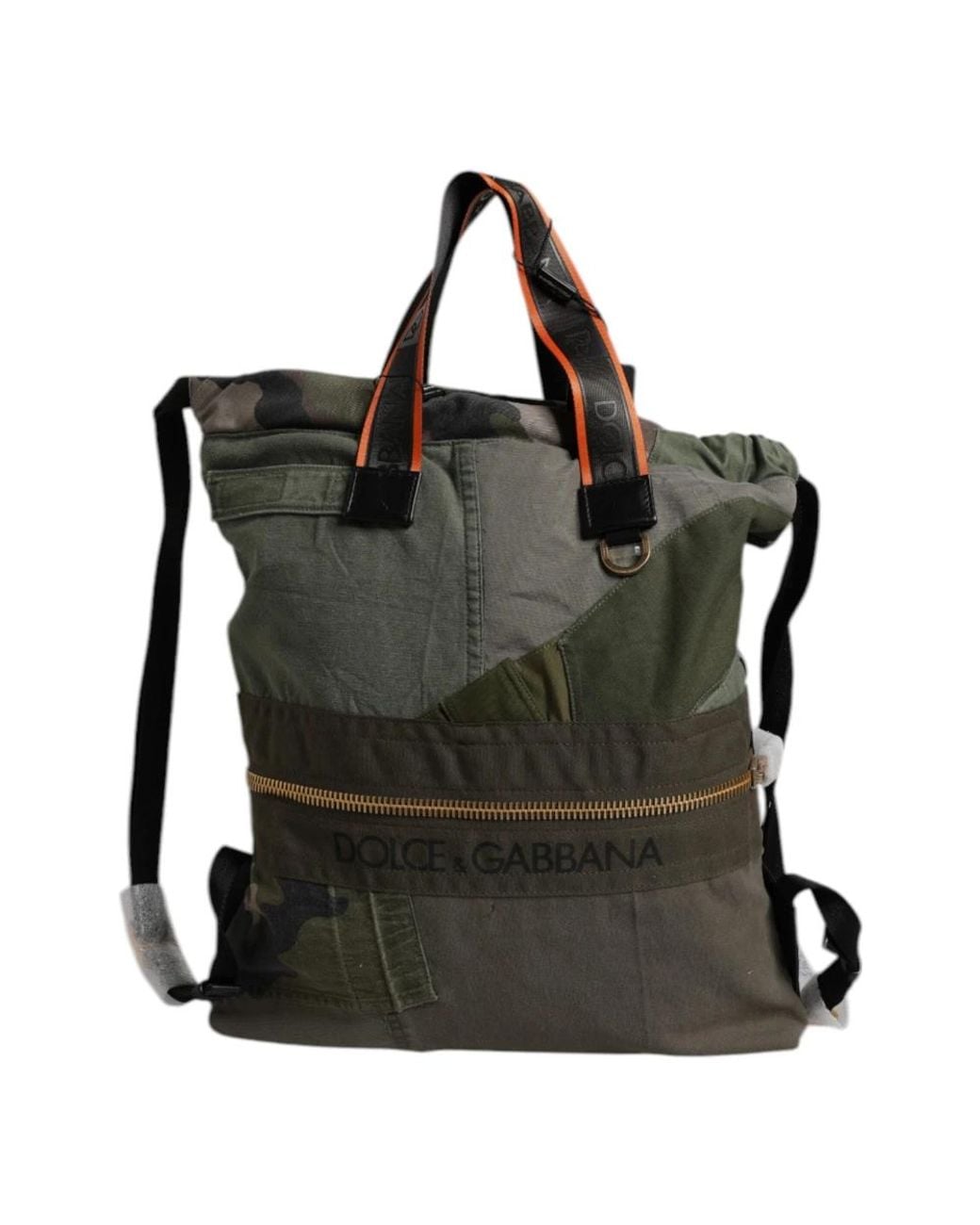 Dolce & Gabbana Patchwork Rucksack pairs patchwork canvas construction with calf leather accents for a refined everyday backpack. It features a drawstring closure and internal pockets for organized, on-the-go use. Key attributes: Military green | Cotton | Drawstring closure | Internal pockets | Shoulder straps | Patchwork | Camouflage print | Brand logo | Logo-engraved metal hardware | Fully lined | Dimensions & fit: 38cm x 47cm x 5cm | Strap: 60cm x 2cm | Composition & care: 80% Cotton | 10% Calf Leather | 10% Nylon