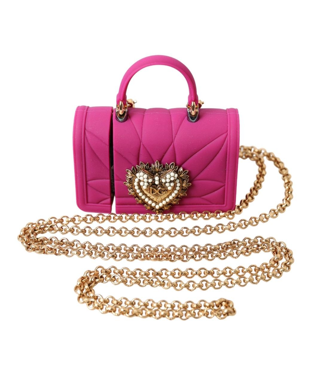 - Pink Silicone Devotion Heart Bag Gold Chain Airpods Case