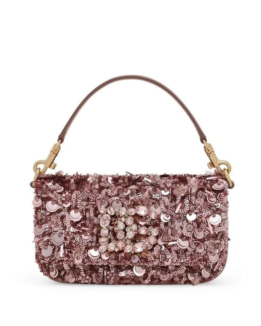 Pink sequin design single detachable top handle foldover top with magnetic fastening main compartment internal slip pocket gold-tone hardware Size: One Size. Gender: Female. Material:CALFSKIN/Silk/Viscose/CALFSKIN. Colour: pink
