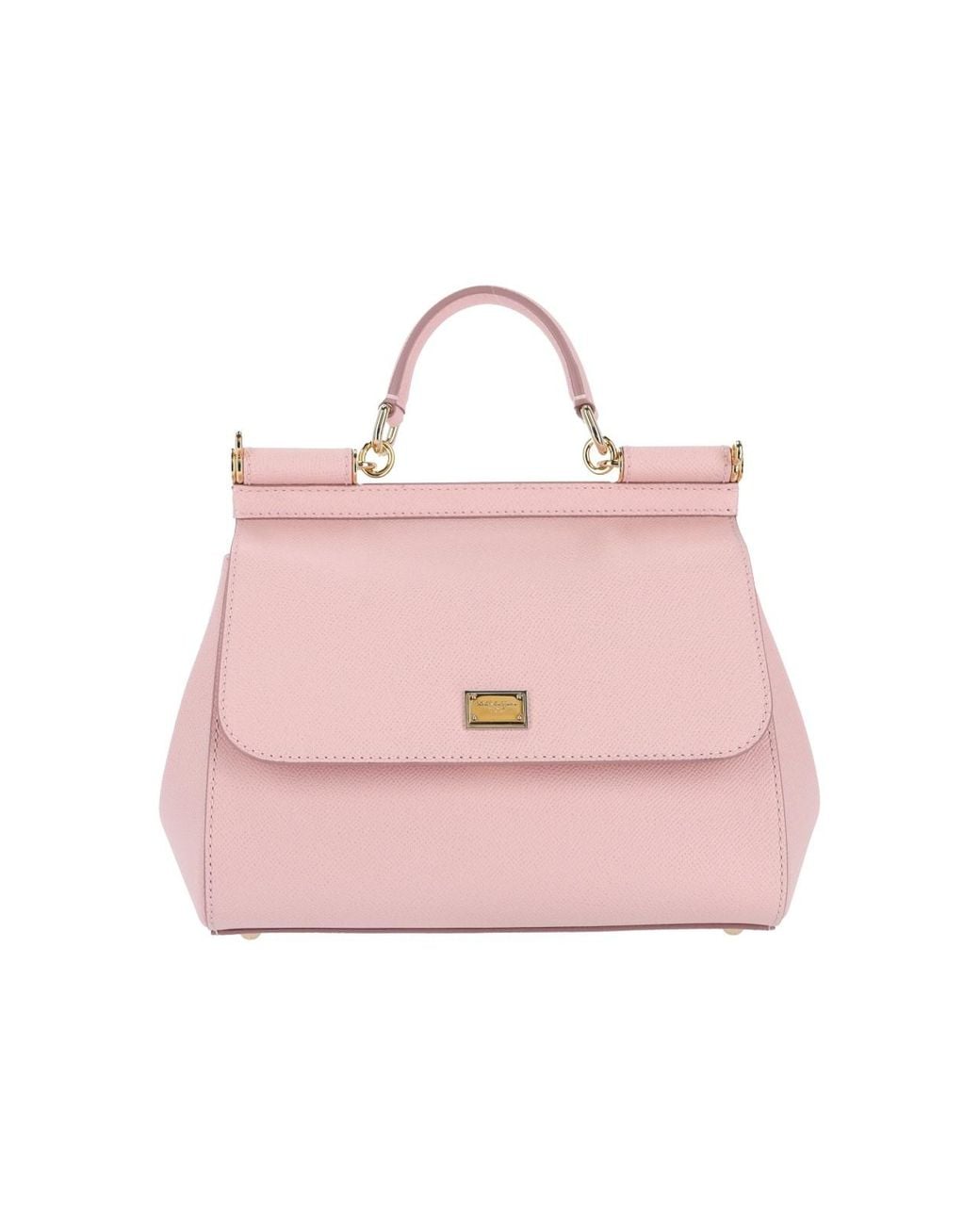 Dolce & Gabbana 'Sicily' large handbag in pink calf leather with top handle, adjustable and removable shoulder strap, magnetic closure, gold metal logo hardware on the front, inner zip pocket, main entire compartment. Colour: pink