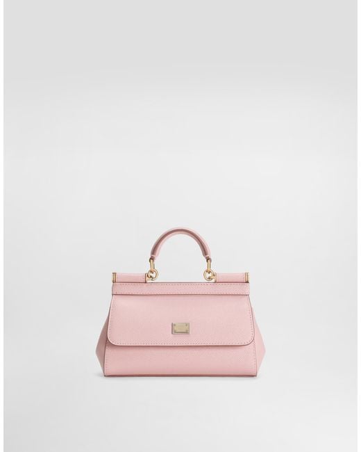 Mini Sicily handbag in Dauphine Calfskin: Pink Leather handle and adjustable and removable leather shoulder strap Tuck-in closure Light gold plating External customization with monogalvanic plate Internal customization with stamp with film Inner flat pocket Item equipped with a logo bag and pre-assembled box Measurements: H13 x W19 x D6 cm Can hold keys, card holder and phone Made in Italy Colour: pink