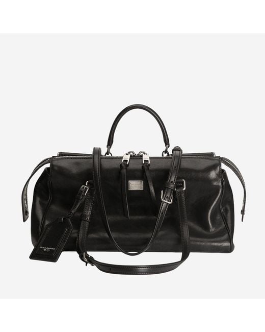 Bag made from calfskin leather Two top handles Top zip closure Leather charm on the front Interior with zip pocket and flat pocket One compartment One zip pocket on the back Logo detail Black Made in Italy Composition: 95% calfskin leather, 5% PVC