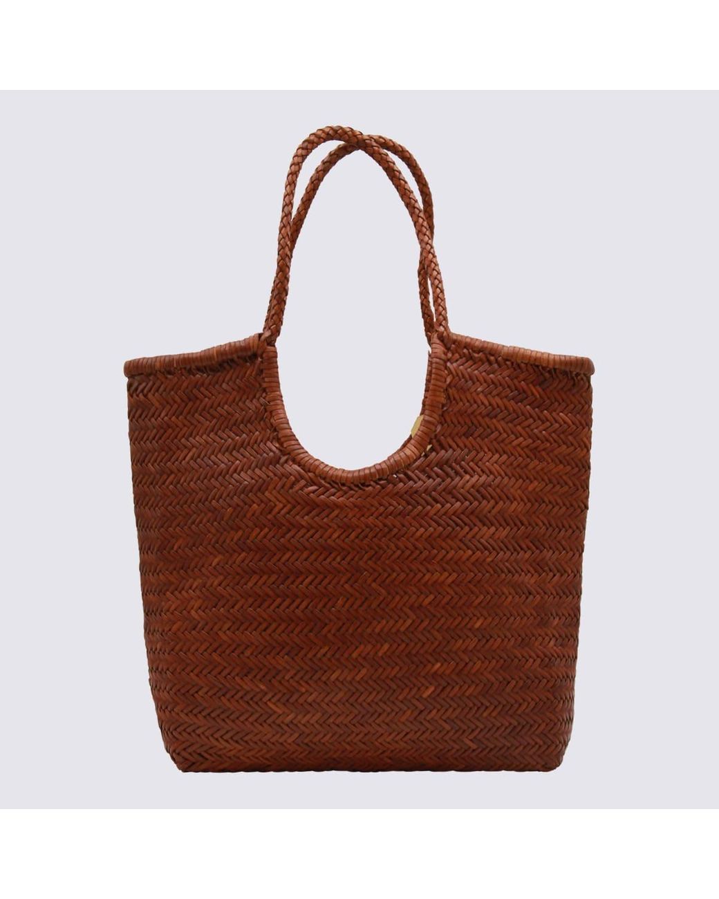 Ns Diagonal Triple Jump Woven Leather Tote - Brown