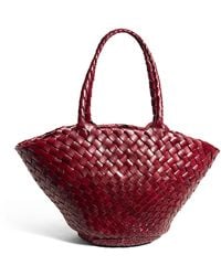 Go to SSENSEHandcrafted basket-woven buffalo calfskin tote in orange. · Twin carry handles · Open throat · Logo disc hand-sewn at interior · Unlined · H17.5 x W10.5 x D6 · Total height: H19.5 Supplier color: Naranja Colour: red