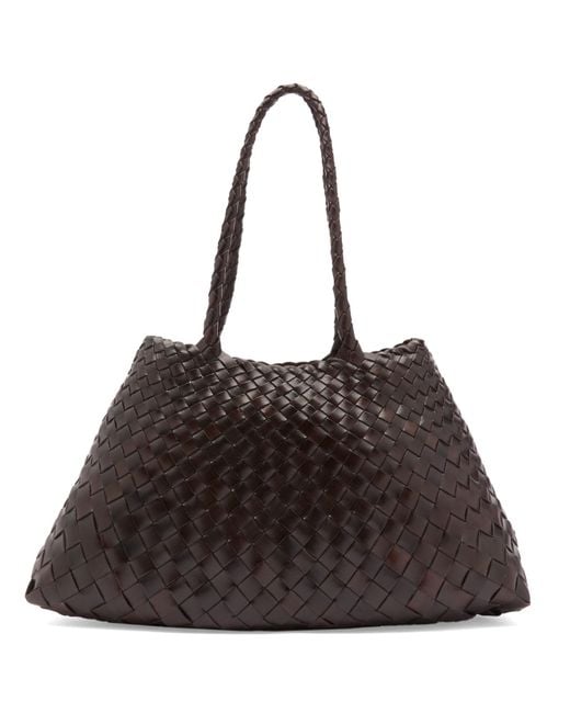 Introducing one of the hottest brands of the year: woven-leather accessory brand, Dragon Diffusion. Ranked 5th on Lyst's top products is Santa Croce: a large tote bag with traditional basket weaving techniques and a shape that flares at the base. Hand-sewn inside is an antiqued St. Christopher medal charm, in homage to the patron saint of travellers. Calf Leather, Handwoven Basket Weave, Unlined, Style Code: 8892-DARKBROWN, Shop All Women’s Dragon Diffusion Shoulder Bags, Shop All Women’s Shoulder Bags , - Dragon Diffusion Women's Santa Croce Large Bag Dark Brown