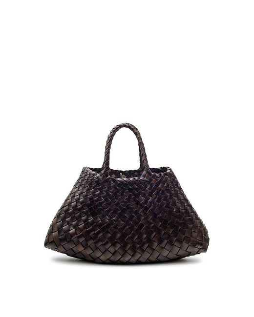 Big Santa Croce Interwoven Leather Tote Bag - Black