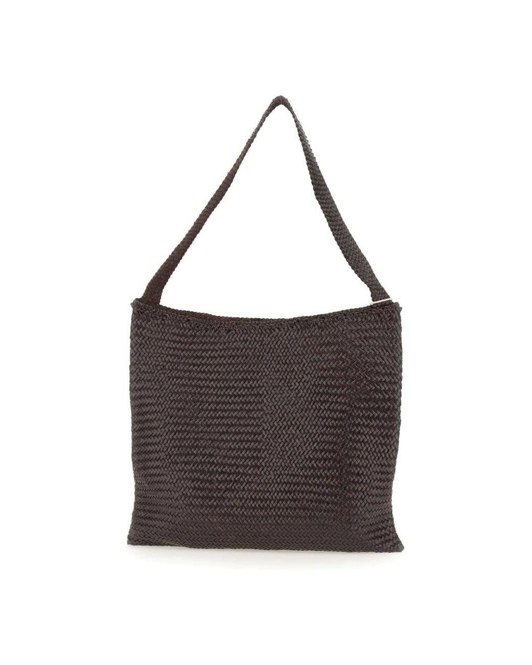 Dragon Diffusion's Ars Tote is a handwoven calfskin shoulder bag that combines a braided weave with a minimalist, unlined interior for everyday carry. The lightweight, open-top silhouette and top-handle design offer versatile shoulder or hand carry. Key attributes: Dark brown | Buffalo calf leather | Top-handle with shoulder-carry silhouette | Unlined interior | Dust bag included | Hand-sewn St. Christopher medal charm inside | Braided woven construction | Open-top silhouette | Single compartment | Dimensions & fit: Width: 15.35 inches / 39 cm | Length: 14.17 inches / 36 cm | Depth: 0.19 inches / 0.5 cm | One size | Shoulder-carry silhouette | Composition & care: Buffalo calf leather | Specialist leather cleaning. Colour: brown