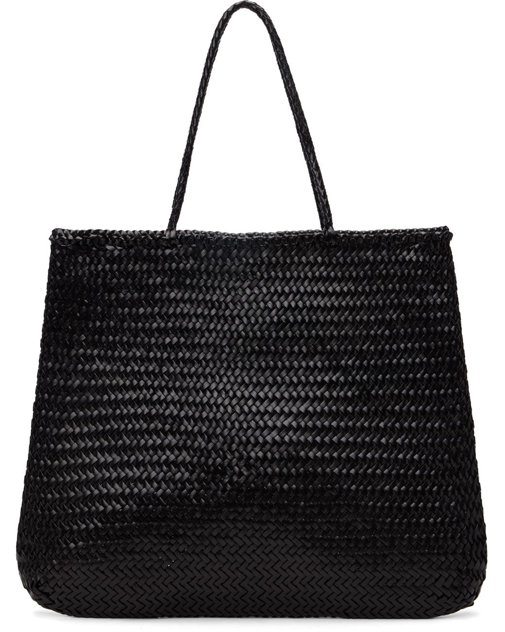 Hand-woven buffalo calfskin tote. · Twin rolled carry handles · Open throat · Logo disc hand-sewn at interior · Unlined · H15 x W19 x D1.5 Supplier color: Black Colour: black