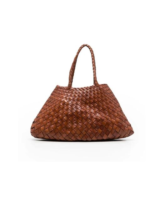 Elevate your style with this Dragon Diffusion tote bag in cognac brown. Featuring thin shoulder straps, internal logo patch, and a protective dust bag. Dimensions: H 22.0cm x W 42.0cm, strap length 23.0cm.