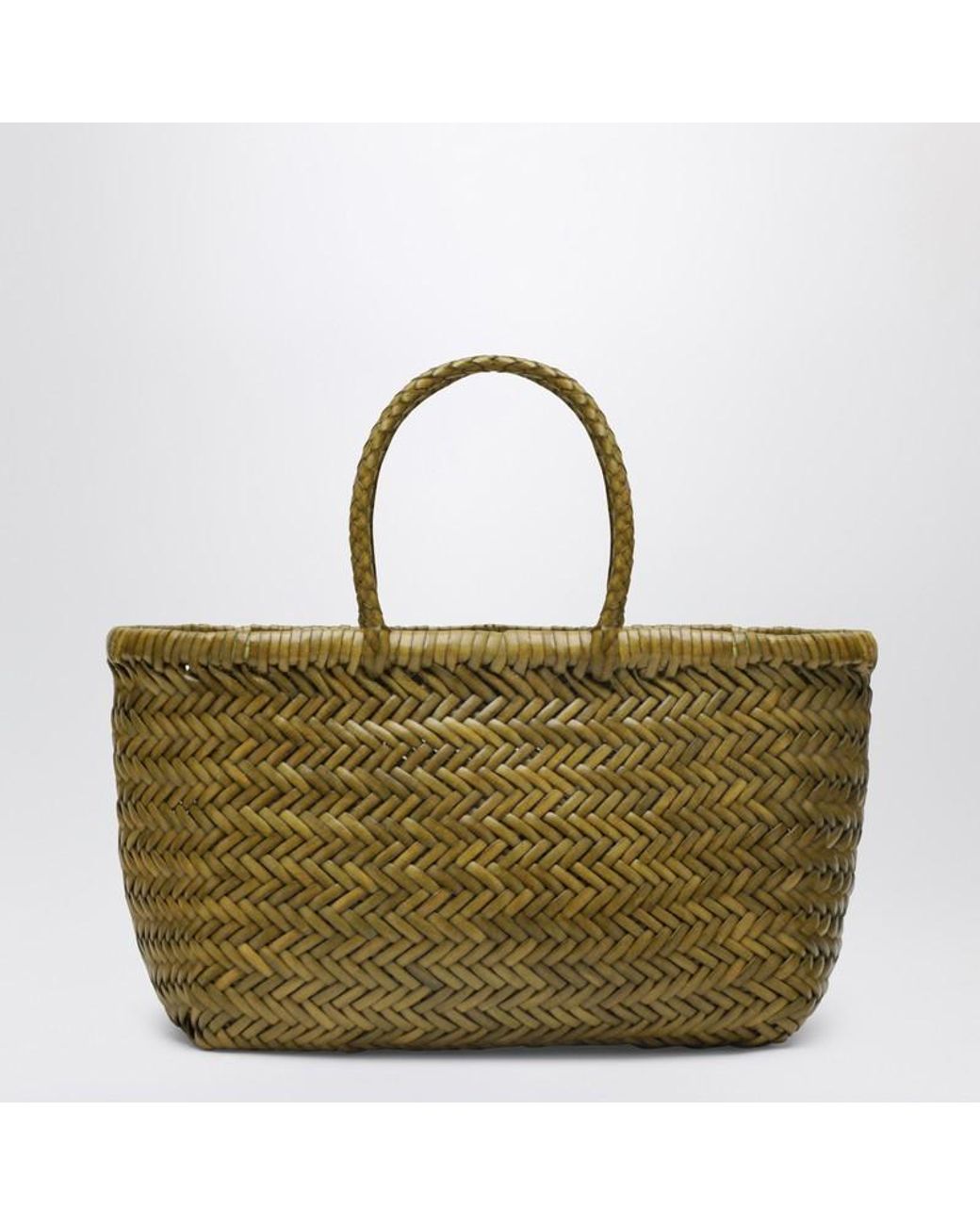 Dragon Diffusion small bag in hand-woven bamboo green buffalo calf leather, featuring an unlined design with no closure, antique Saint Christopher medallion charm and two handles.SpecificationValueBrandDRAGON DIFFUSIONAge GroupadultColorGreenMaterialLeatherMade InIndiaGenderWomenSizeOne sizeSeasonSS26