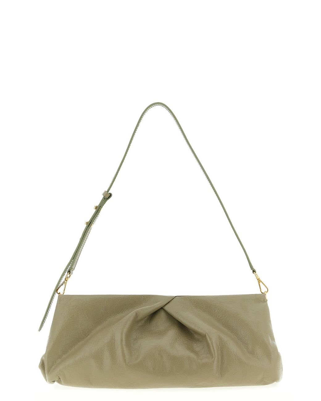 Large 'Crisp' craquelé leather clutch with front embossed logo, magnetic snap top closure, adjustable and removable shoulder strap. Composition: 100% calfskin leather (Bos Taurus). Size&Fit: W 35 x H 14 x D 11 cm. Colour: green