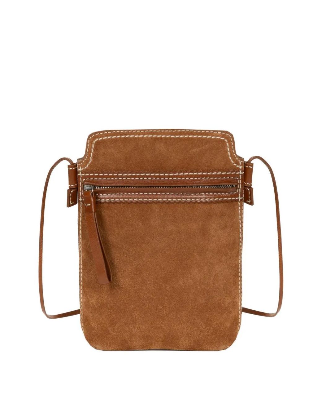 Brown suede contrast stitching front zip pocket shoulder strap Size: One Size. Gender: Male. Material:Calf Leather/Suede/Leather. Colour: brown