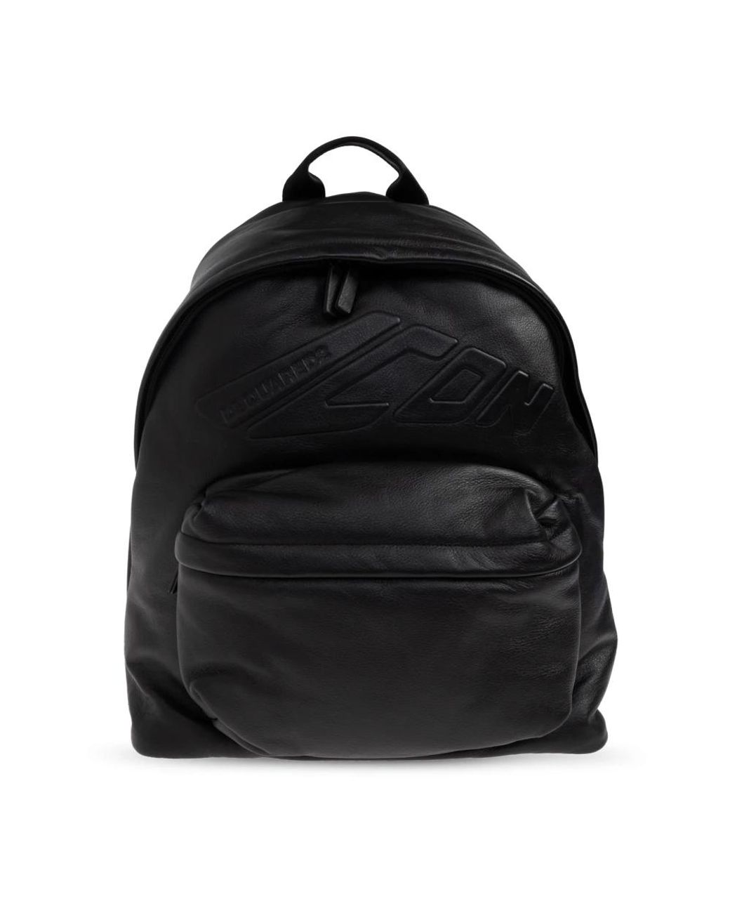 Logo Backpack crafted by the fashion house Dsquared 2 is the epitome of refined simplicity and timeless elegance. Made from smooth, slightly glossy calfskin leather, it impresses with meticulous finishing touches and a minimalist design – free from unnecessary patterns, yet featuring distinctive accents in the form of a large embossed "Icon" logo and a subtle "Dsquared 2" emblem. The classic, rounded shape of the backpack is enhanced by a spacious main compartment and a large, front zip pocket. The construction is completed with wide, adjustable straps adorned with a discreet embossed detail and a sturdy carrying handle. The whole piece stands out for its exceptional comfort and durability. WHY IS This Product Worth Buying? * Noble material with a luxurious finish * Striking logo in an artistic composition * Functionality combined with sophisticated style * Sturdy, practical construction * Unique design by a world-renowned fashion house Height: 43cm Width: 35cm Model`s Measurements Height: 193cm Chest: 95cm Waist: 82cm Hips: 93cm Colour: black