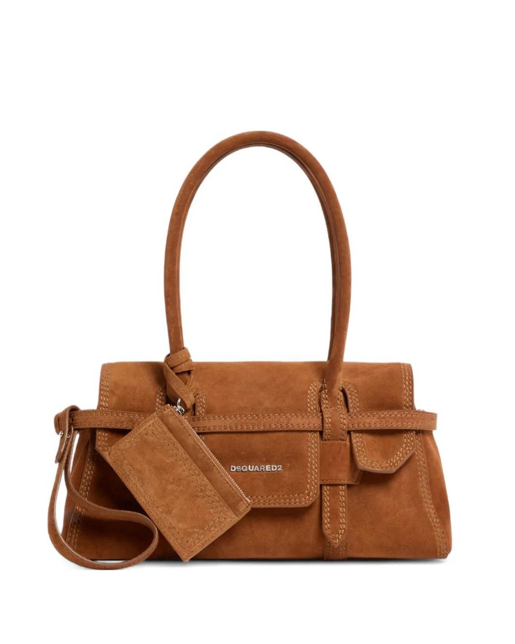Brown top handles logo detail front flap closure Size: One Size. Gender: Female. Material:Calf Suede. Colour: brown
